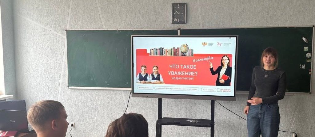 В понедельник, 6 октября, состоялся урок из цикла «Разговоры о важном», посвящённый теме «Что такое уважение?», приуроченный ко Дню учителя.
