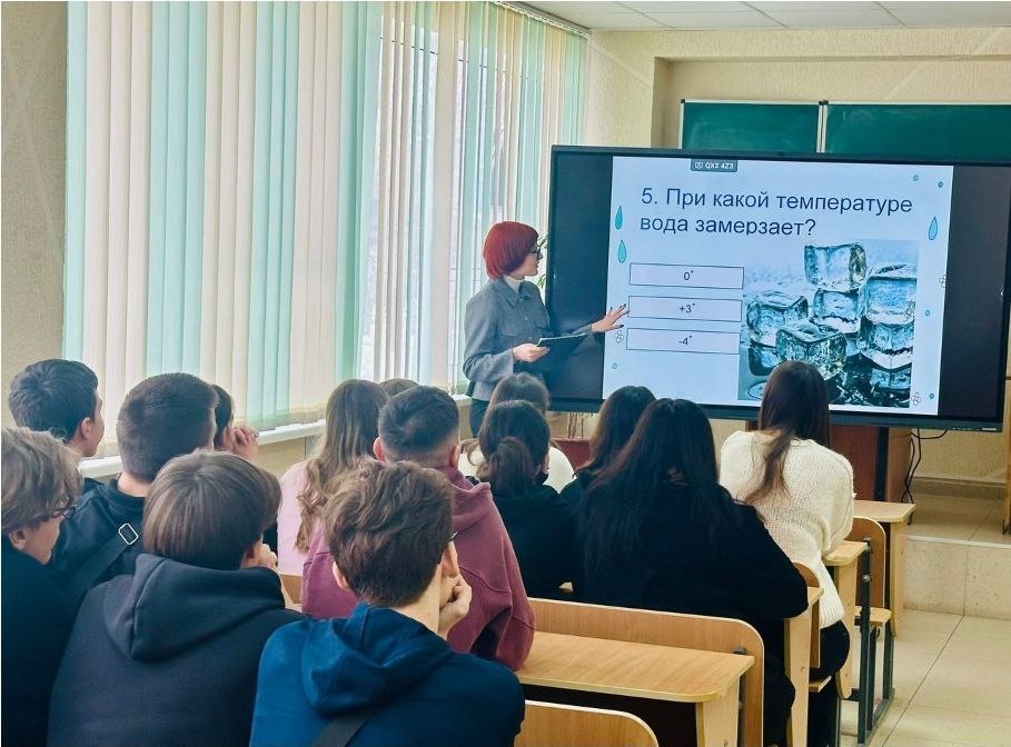 Продолжением программы стала познавательная викторина, подготовленная студентами кафедры. В интерактивном формате школьники отвечали на вопросы, решали небольшие практические задачи и обсуждали реальную работу специалиста профиля водоснабжения и водоотведения в рамках современных условий городской инфраструктуры. Такой формат позволил ребятам не только проверить свои знания, но и увидеть, насколько многогранной и полезной может быть работа инженера.